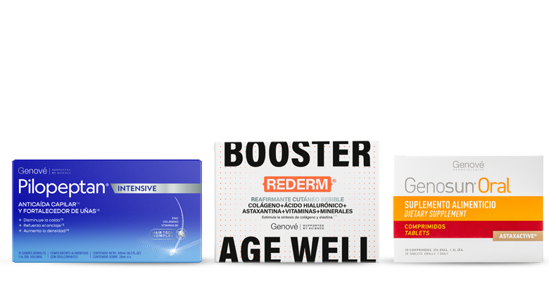Complementos nutricionales formulados para diferentes necesidades dermatológicas como la caida de cabello, la fotoproteccón oral y el antienvejecimiento cutáneo para actuar desde el interior.